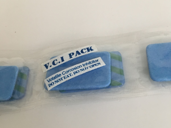 性能描述: VCI氣相防銹片是將VCI特制的氣相緩蝕劑與新材料聚合物結合而成,可以按客戶需求貼服于精密設備儀器的空間內。在密閉空間內,VCI經氣化揮發(fā)到金屬的每個角落,吸附在金屬表面形成致密保護膜層從而起到防銹的作用